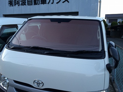 純正フロントガラスと比較すると、太陽の光を反射して美しく輝くシャイニングローズカラーが大きな特徴となるSOLA IMPACT。